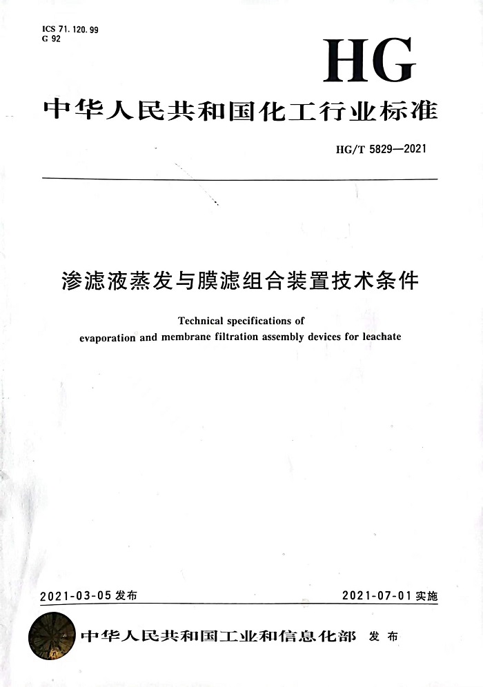 滲透液蒸發(fā)與膜濾行業(yè)標(biāo)準(zhǔn)